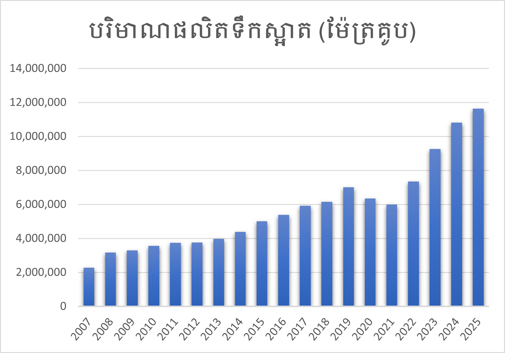 | ២០២៥ | ម៉ែត្រគូប | ១១,៦៣២,៦៥០ |